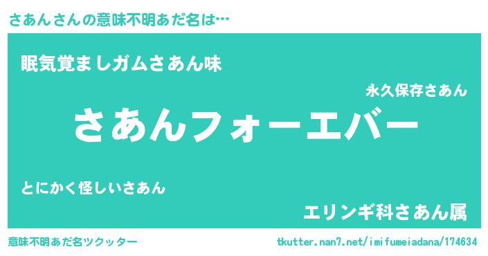 | 女子向けラノベタイトル風あだ名 | 『さあんの雑貨屋さん』『さあん恋絵巻』 |