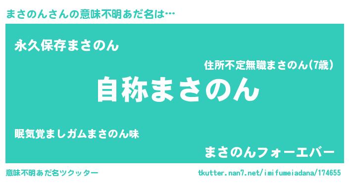 | 男性向けラノベタイトル風あだ名 | 『Re:まさのんから始める異世界生活』 |