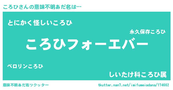 | ヘコむあだ名 | 『酢こんぶ』『ころを』『ころもー』 |
