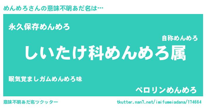 | 胡散臭い通販商品みたいなあだ名 | 『絶対に幸福をもたらす健康食品…その名も「めんめろ」』 |