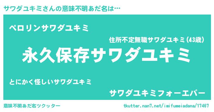 | 男性向けラノベタイトル風あだ名 | 『サワダユキミという概念が存在しない退屈な世界 』 |