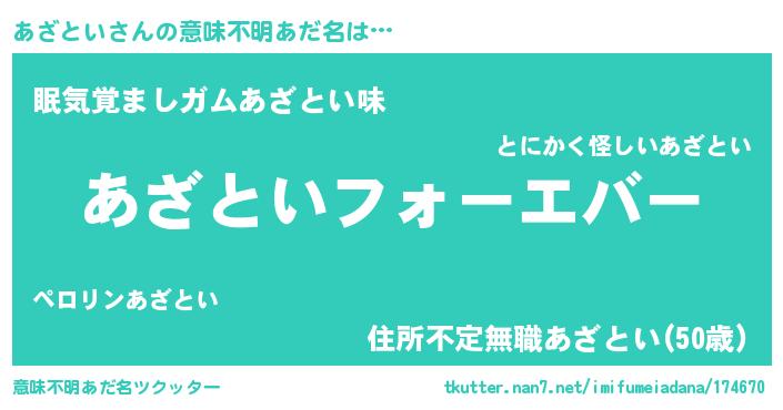 | ヘコむあだ名 | 『なまこ酢』『あざお』『あざにー』 |