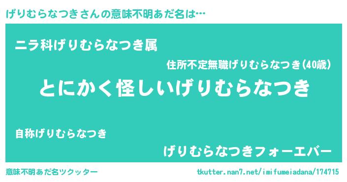 | 料理風あだ名 | 『げりむらなつきの豆乳スープ』 |