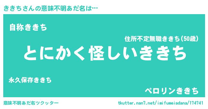 | 女子向けラノベタイトル風あだ名 | 『ききちは平凡を望む』 |