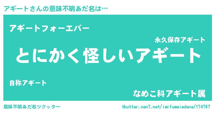 | 女子向けラノベタイトル風あだ名 | 『アギート様がみてる』 |