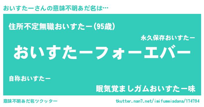 | 欧米人風あだ名 | 『おいすたークリステル』 |