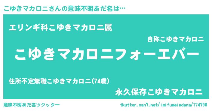 | 欧米人風あだ名 | 『こゆきマカロニクリステル』 |