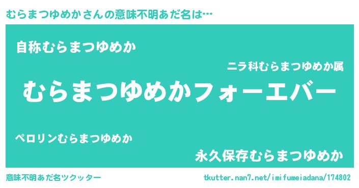 | 男性向けラノベタイトル風あだ名 | 『やはりむらまつゆめかの青春ラブコメはまちがっている 』 |