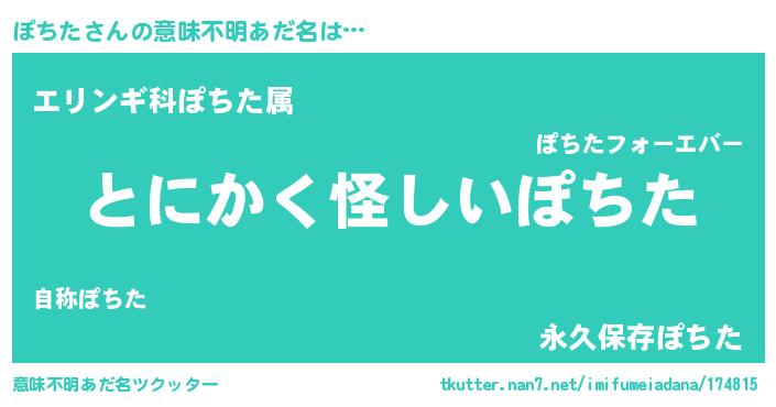 | ヘコむあだ名 | 『ぽち太郎』『ぽちた(震え声)』 |