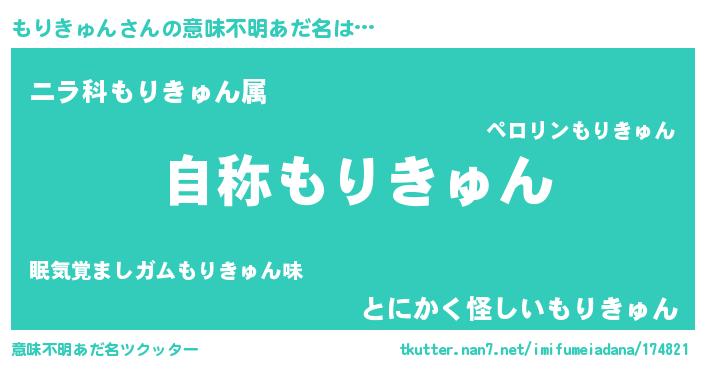 | 男性向けラノベタイトル風あだ名 | 『もりきゅんに滅ぼされるだけの簡単なお仕事です』 |