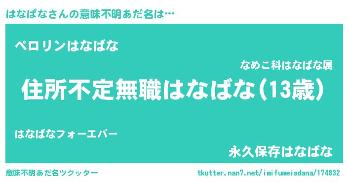 | ポケモン風あだ名 | 『ハナゴンZ』『ハーナイ』『ゼニハナ』 |