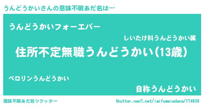 | 自動車の名前っぽいあだ名 | 『ウウディ』『ウクア』『レクウス』 |