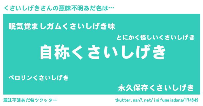 | 欧米人風あだ名 | 『ケンブリッジくさいしげき』 |