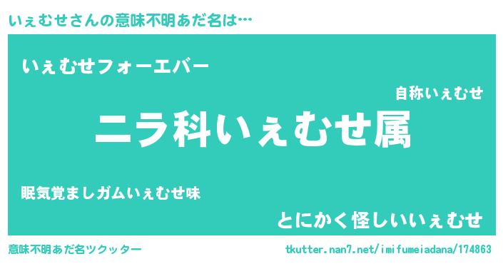 | 男性向けラノベタイトル風あだ名 | 『うちのいぇむせが世界を掌握している!』 |