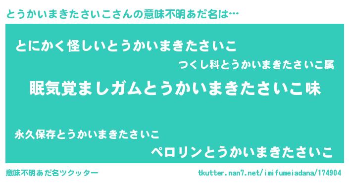 | 男性向けラノベタイトル風あだ名 | 『はたらくとうかいまきたさいこさま!』 |