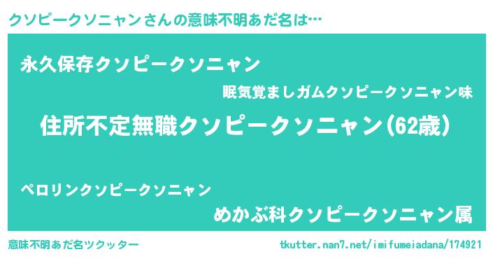 | 料理風あだ名 | 『クソピークソニャンの炊き込みご飯』 |