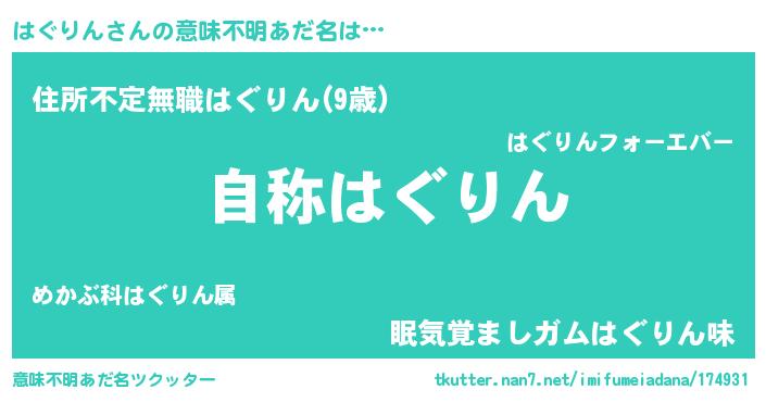 | 欧米人風あだ名 | 『はぐりん・ステッグマイヤー』 |