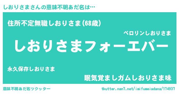 | 欧米人風あだ名 | 『しおりさまクリステル』 |