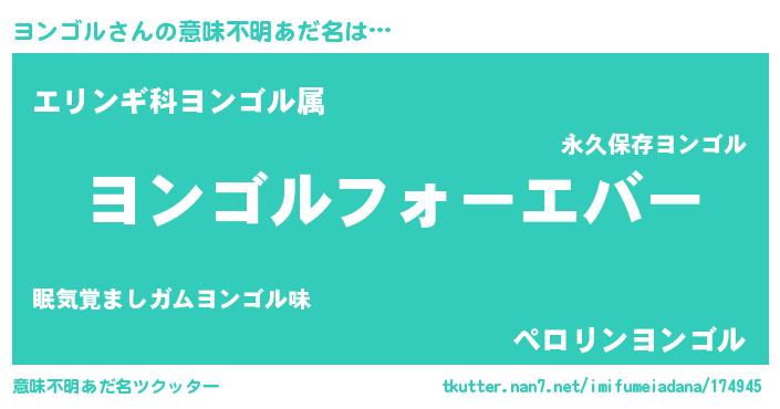 | 女子向けラノベタイトル風あだ名 | 『ヨンゴルの雑貨屋さん』 |