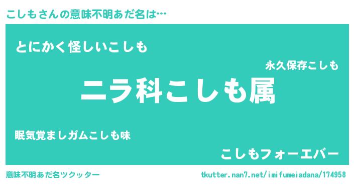 | 男性向けラノベタイトル風あだ名 | 『こしも~年齢イコール彼女いない歴の魔法使い~』 |