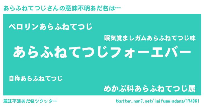 | 女子向けラノベタイトル風あだ名 | 『あらふねてつじの婚約者』 |