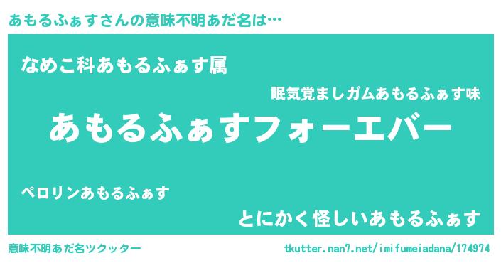 | 男性向けラノベタイトル風あだ名 | 『あもるふぁすに滅ぼされるだけの簡単なお仕事です』 |