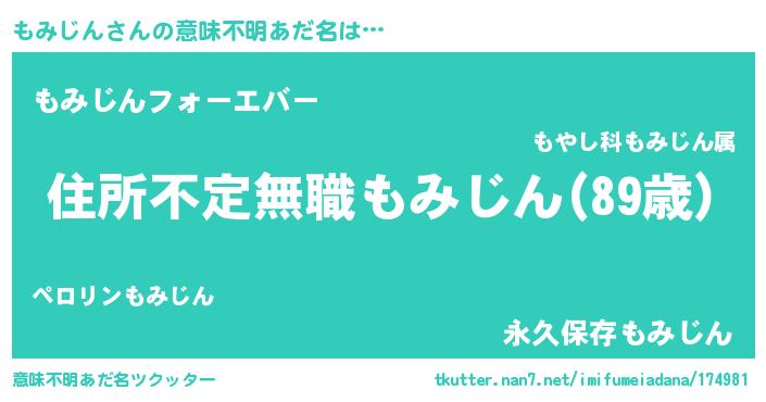 | 男性向けラノベタイトル風あだ名 | 『この素晴らしい世界にもみじんを!』 |