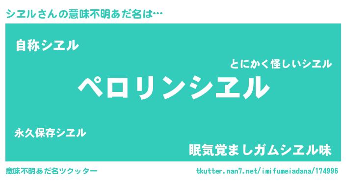 | ヒーロー風カッコイイあだ名 | 『スーパーシヱル』『超時空戦士シヱル』 |