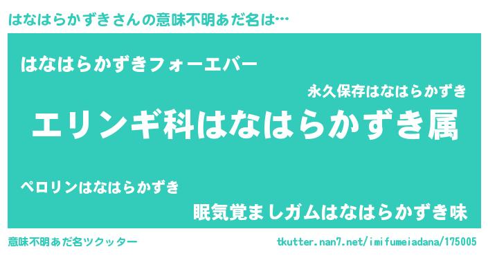 | 料理風あだ名 | 『はなはらかずきごはん』 |