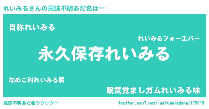 | 伝説のあだ名 | 『古文書に記された暗殺者れいみる』 |