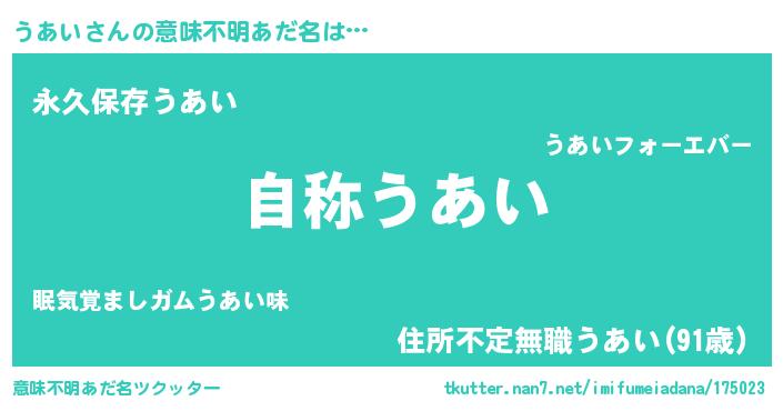 | 男性向けラノベタイトル風あだ名 | 『魔法科高校のうあい』『緋弾のウアイ』 |