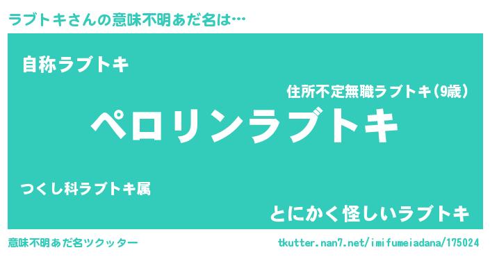 | 男性向けラノベタイトル風あだ名 | 『ラブトキに滅ぼされるだけの簡単なお仕事です』 |