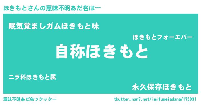 | ヘコむあだ名 | 『ほきもと(小並感)』『豆乳』 |