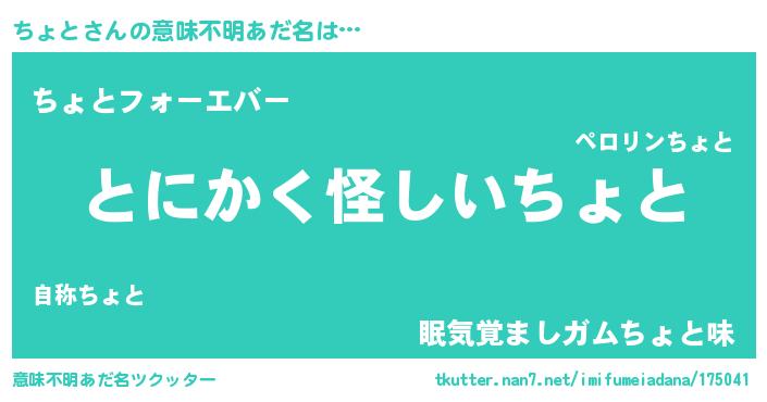 | ヒーロー風カッコイイあだ名 | 『幻影騎士チョ』『ウルトラちょとマン』 |