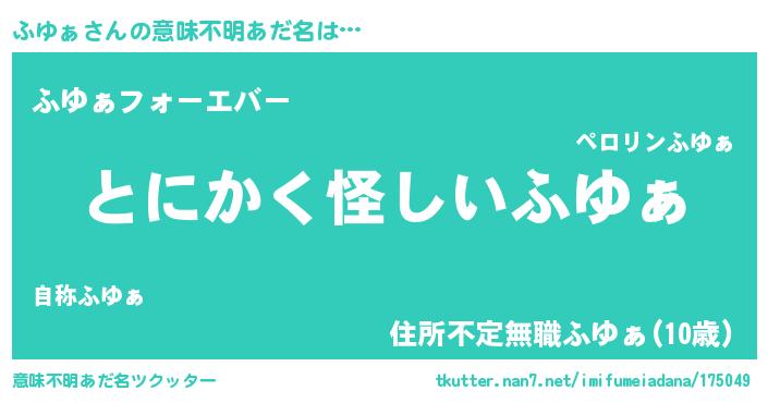 | ファンタジー風あだ名 | 『ファントムフユス』『ヴァルフユーナ』 |