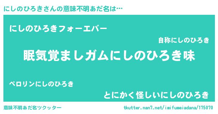 | 欧米人風あだ名 | 『アンジェラ・にしのひろき』 |