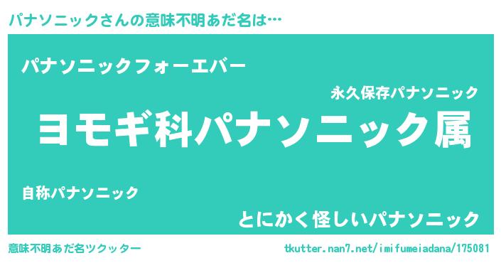 | 男性向けラノベタイトル風あだ名 | 『パナソニックに滅ぼされるだけの簡単なお仕事です』 |