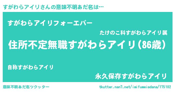 | ヒーロー風カッコイイあだ名 | 『仮面スガダー』『ネオスガワラアイリ』 |