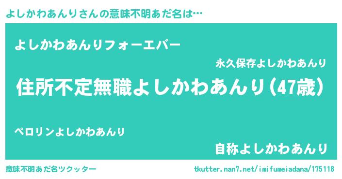 | 胡散臭い通販商品みたいなあだ名 | 『あなたにだけ特別に提供する限定10本のレアな日本酒…その名も「よしかわあんり」』 |