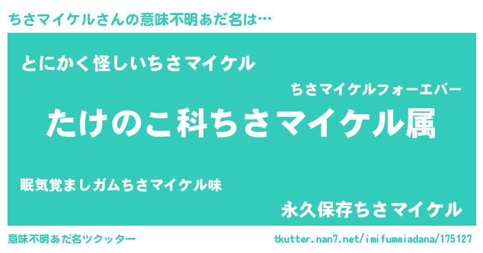 | 男性向けラノベタイトル風あだ名 | 『転生したらちさマイケルだった件』 |