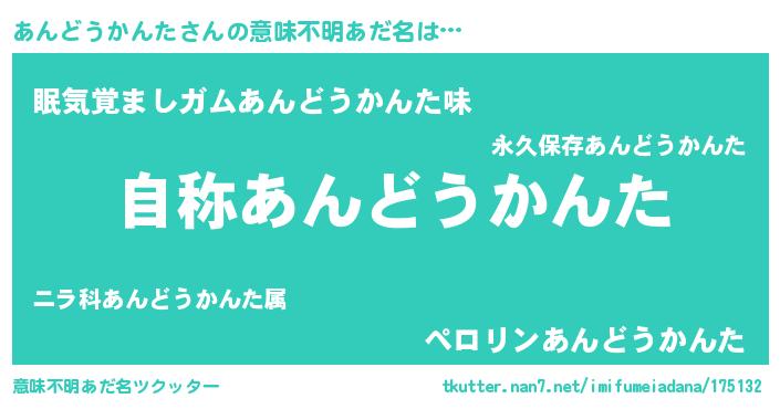 | ヘコむあだ名 | 『あんもー』『あんどうかんた(遠い目)』 |
