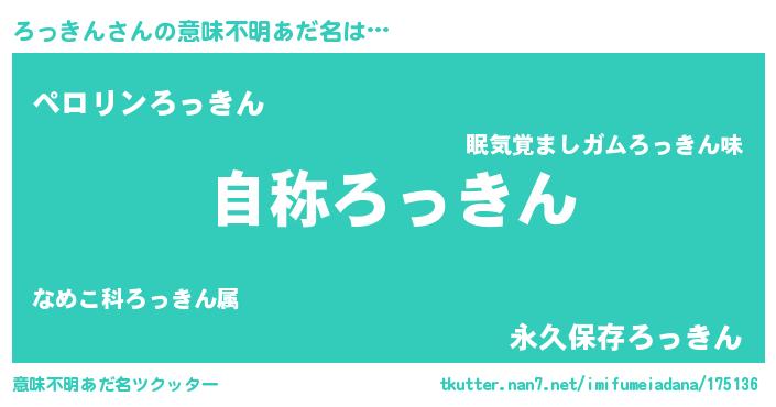| 男性向けラノベタイトル風あだ名 | 『Re:ろっきんから始める異世界生活』 |