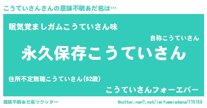 | 胡散臭い通販商品みたいなあだ名 | 『来世でも幸せになれる健康食品…その名も「こうていさん」』 |