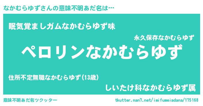 | 欧米人風あだ名 | 『なかむらゆず・ステッグマイヤー』 |