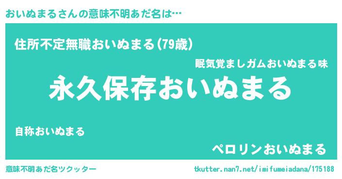 | 男性向けラノベタイトル風あだ名 | 『おいぬまるという概念が存在しない退屈な世界 』 |