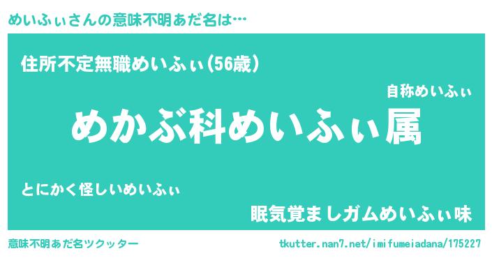 | ヒーロー風カッコイイあだ名 | 『仮面メイダー』『正義の使者めいふぃ』 |