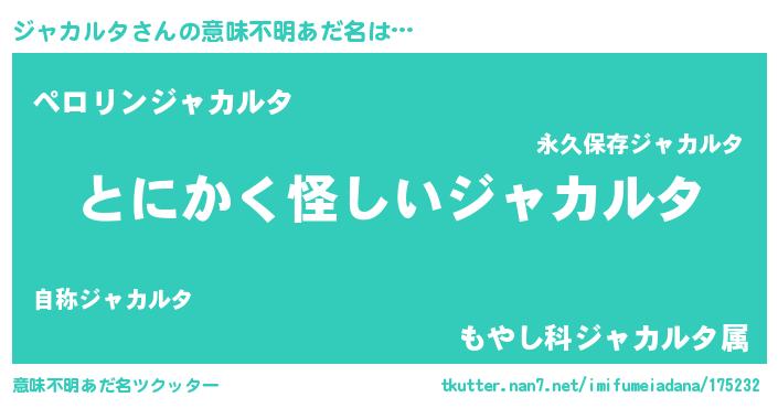 | ヒーロー風カッコイイあだ名 | 『黄金騎士ジャ』『スーパージャカルタ』 |