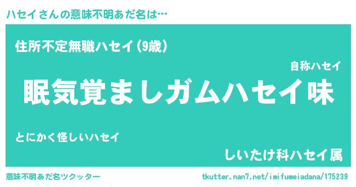 | ヒーロー風カッコイイあだ名 | 『正義の使者ハセイ』『仮面ハセダー』 |