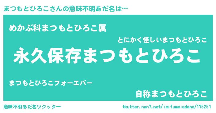 | ヘコむあだ名 | 『まつもとひろこ(遠い目)』『まつっ子』 |