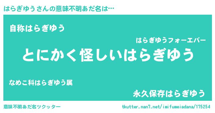 | 男性向けラノベタイトル風あだ名 | 『はらぎゆうの嫁は女の子じゃないと思った?』 |